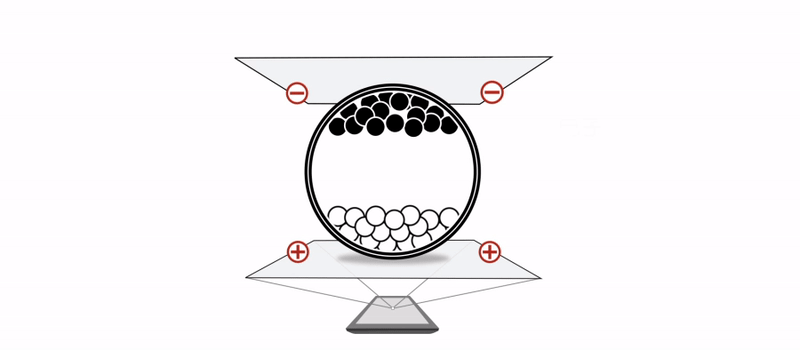 Das schwarz-weiße E-Paper-Display besteht beispielsweise aus Millionen von Mikrokapseln, die jeweils elektrophoretische Partikel enthalten, ein negativ geladenes weißes Partikel und ein positiv geladenes schwarzes Partikel. Wenn wir das elektrische Feld ändern, werden die schwarzen oder weißen Partikel in die entsprechende Region rückt nach oben, während die Region von außen betrachtet weiß oder schwarz erscheint. Dies ist das Grundprinzip der E-Ink-Technologie.
